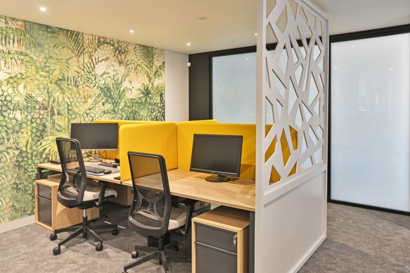 Pour personnaliser les bureaux et refléter l’identité de chaque entreprise, R Déco apporte des touches décoratives uniques : revêtements muraux originaux, papiers peints panoramiques, cadres ou fresques aux couleurs de la marque. La végétalisation occupe également une place importante avec des plantes en pots design, des jardinières élégantes ou encore des murs végétaux stabilisés, qui apportent fraîcheur et sérénité tout en améliorant le bien-être général.